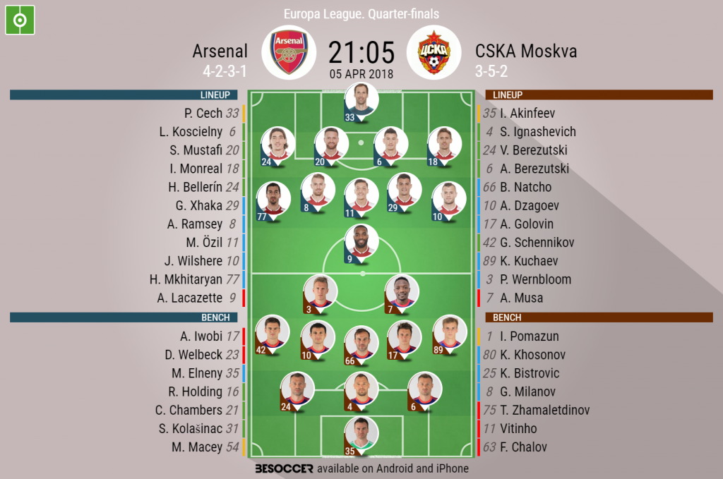 arsenal vencio a cska moscu en cuartos de final de europa league uefa europa league futbolred