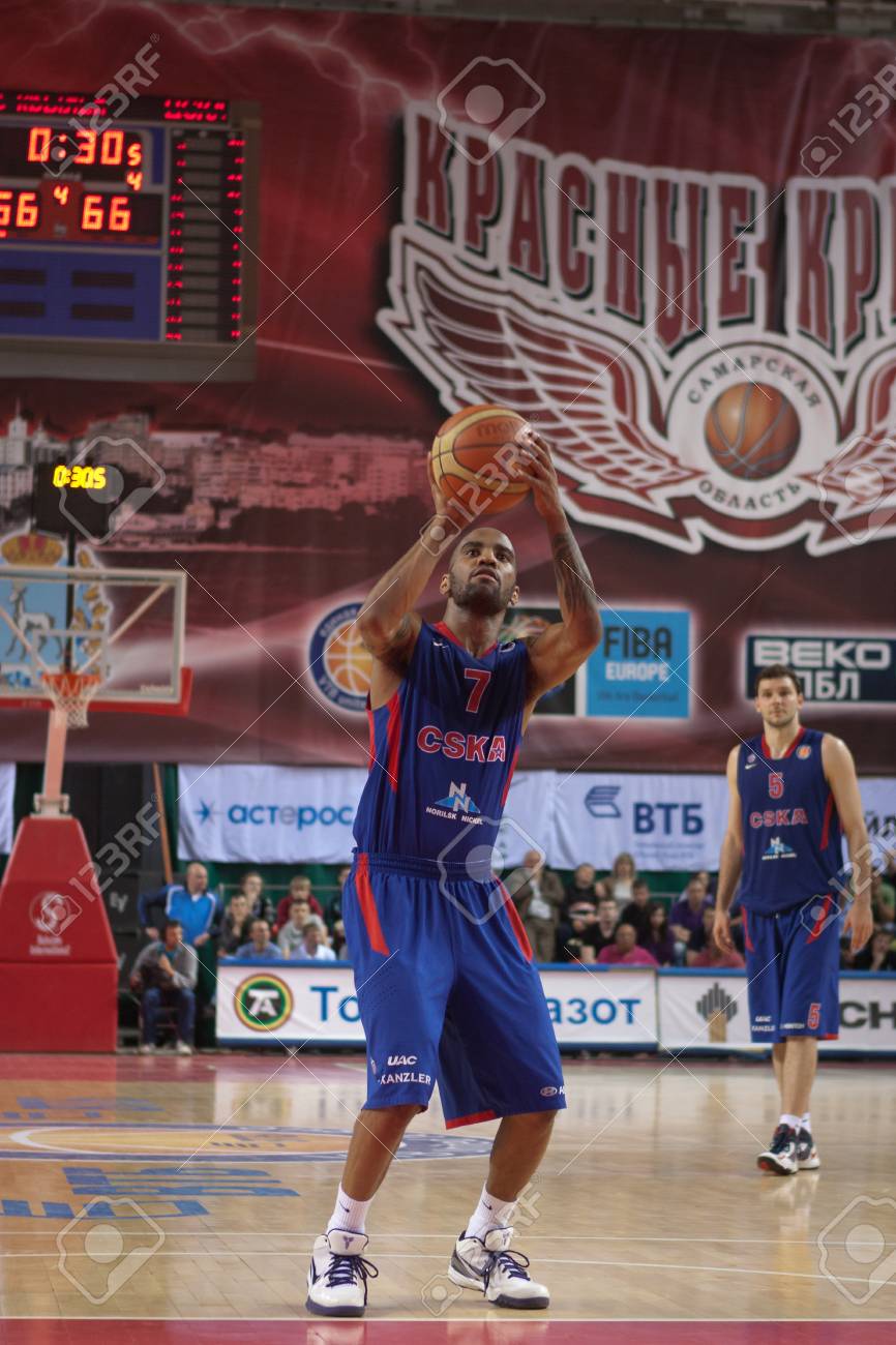 samara rusia 20 de mayo aaron jackson de bc cska lanza desde la linea de tiros libres en un partido contra bc krasnye krylia el 20 de mayo de 2013 en