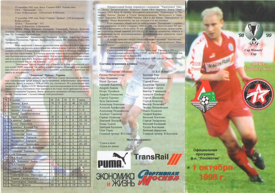 sport muzyka kino programmka k matchu kubka kubkov lokomotiv moskva cska kiev ukraina 01 10 1998
